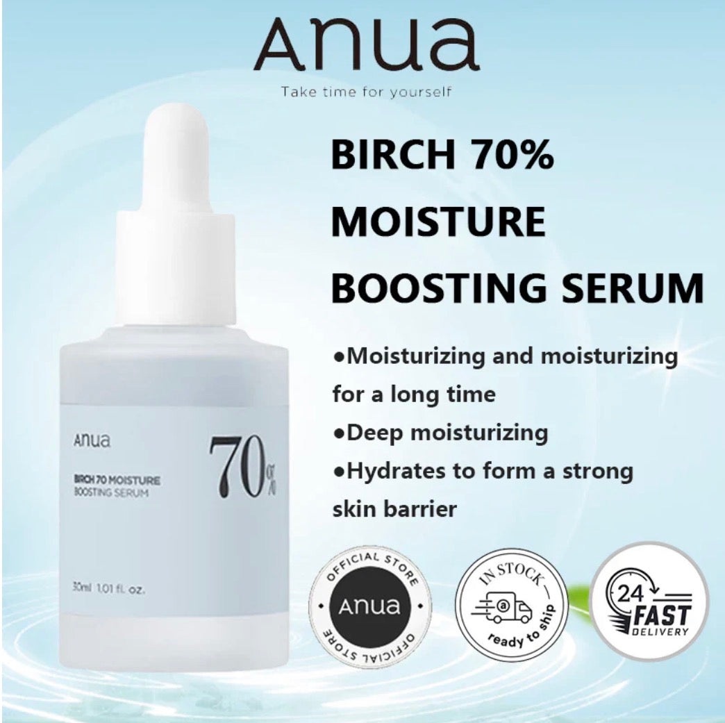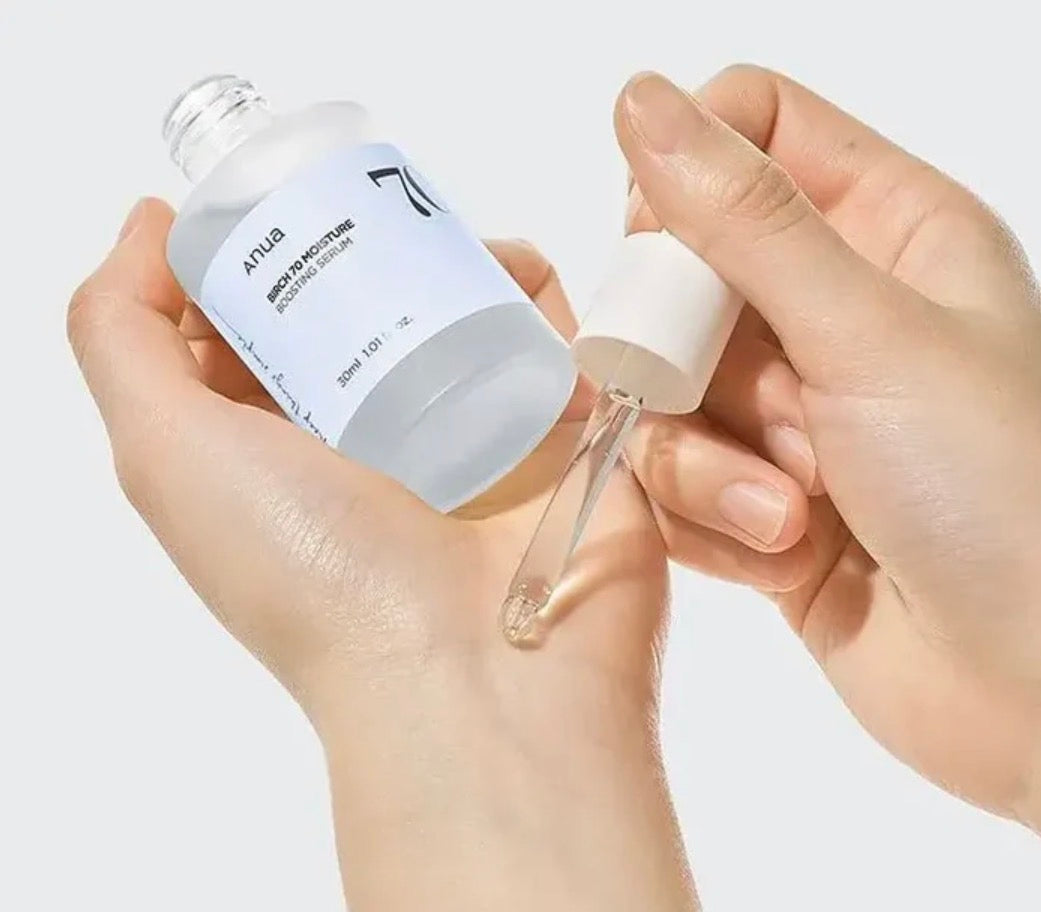 Experience the ultimate hydration and pH balance restoration with Anua Birch Moisture Boosting Serum. Formulated with a remarkable 70% Japanese White Birch Water, this subacidic serum is your skin's moisture guardian, preventing hydration loss and maintaining the ideal pH equilibrium.