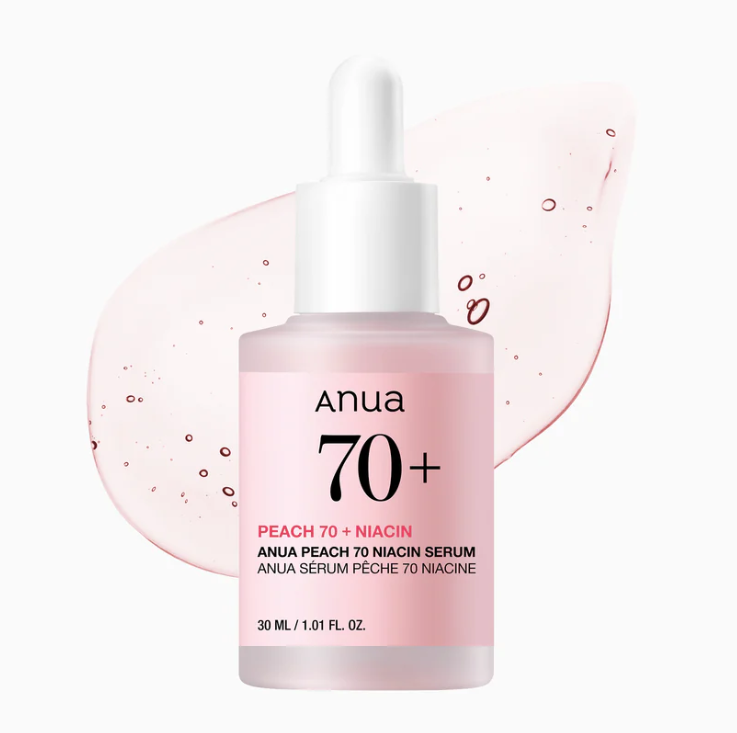 Anua's Peach 70% Niacinamide Serum sinks deep within the skin to hydrate, while combining the brightening powers of alpha-arbutin and niacinamide to reduce the appearance of hyperpigmentation, balance oil production, and even out skin tone. The subtle pink hue comes from vitamin B12.